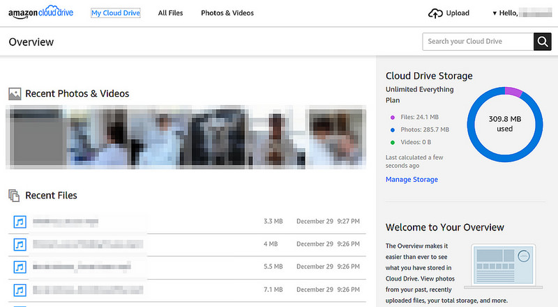 For those Amazon Prime members, Amazon Cloud Drive is where you can store “unlimited” amount of photos and upto 5GB of other files for free. Some Prime customers (like me) may be offered a free upgrade to “Unlimited Everything” plan in which you get unlimited space for any files. If you are not a Amazon Prime member, you will have to pay a yearly subscription fee (11.99USD/year).