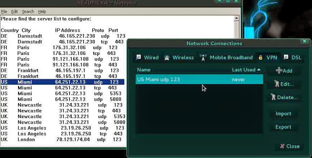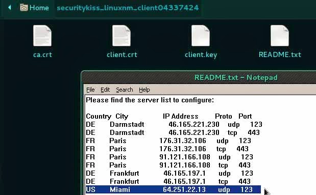 View the README.txt file to find the list of SecurityKISS gateways (In this tutorial i am gonna use the Miami gateway,you can see i am highlighted that in the following screenshot )