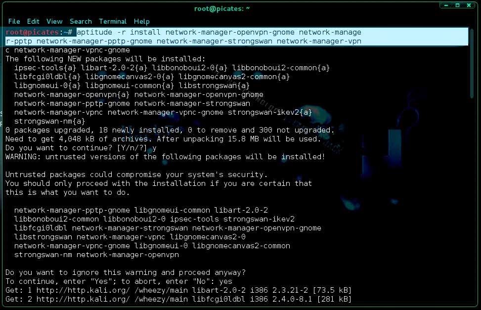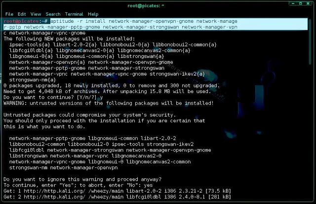 aptitude -r install network-manager-openvpn-gnome network-manager-pptp network-manager-pptp-gnome network-manager-strongswan network-manager-vpnc network-manager-vpnc-gnome