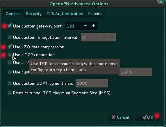 Tick ‘Use LZO data compression‘ and ‘Use custom gateway port‘ check boxes.