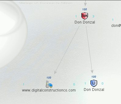 We use the AffSpockToAff_Others Transform from the Spock output to see other social networks Don is a part of, or at least don at digitalconstructionco.com is.