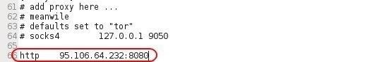 Now, to use one of our Russian proxies, we simply need to add the type of proxy (http) and the IP address and port for that proxy as I have done above. Then, save the proxychain.conf file and close it.