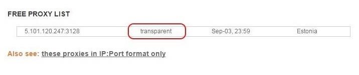 When click on it, we can see that this one proxy in Estonia is a transparent proxy. This means it won’t hide our IP. That won’t work!
